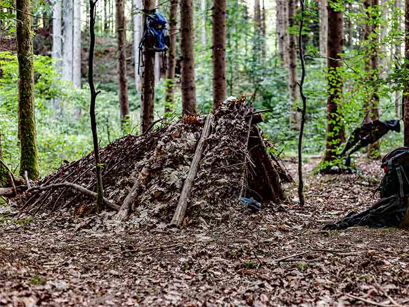 Gemeinsam Survival-Techniken lernen, Teamwork beim Bauen & Versorgen